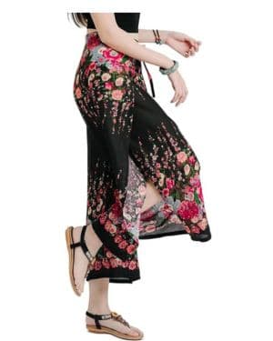 - Elegancia bohemia: Para ocasiones más formales, combina el pantalón bohemio de flores con una blusa de seda o satén en tonos suaves. Añade unos tacones altos y joyería delicada para un estilo elegante y bohemio a la vez.