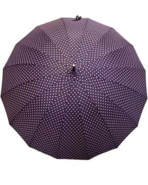 En un look femenino con falda larga o en un conjunto más contemporáneo, el paraguas de lunares actúa como un hilo conductor que une practicidad y estilo.